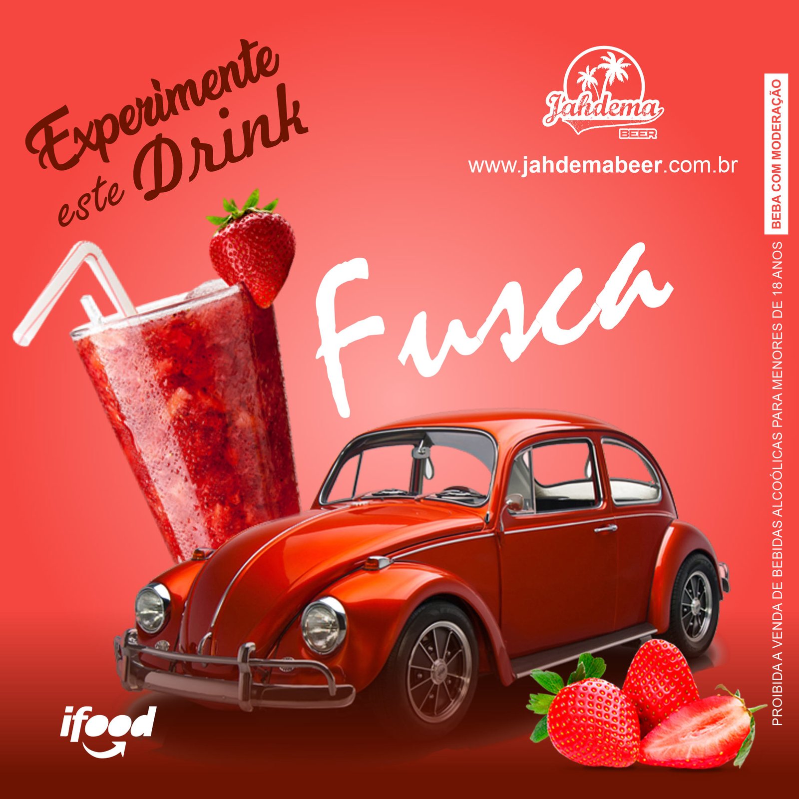 Kit para preparo da bebida “Fusca” contendo 1 Duelo sabor morango, 1 suco Tang sabor morango, 1 gelo de morango ou coco, e 1 copo descartável de 700ml.